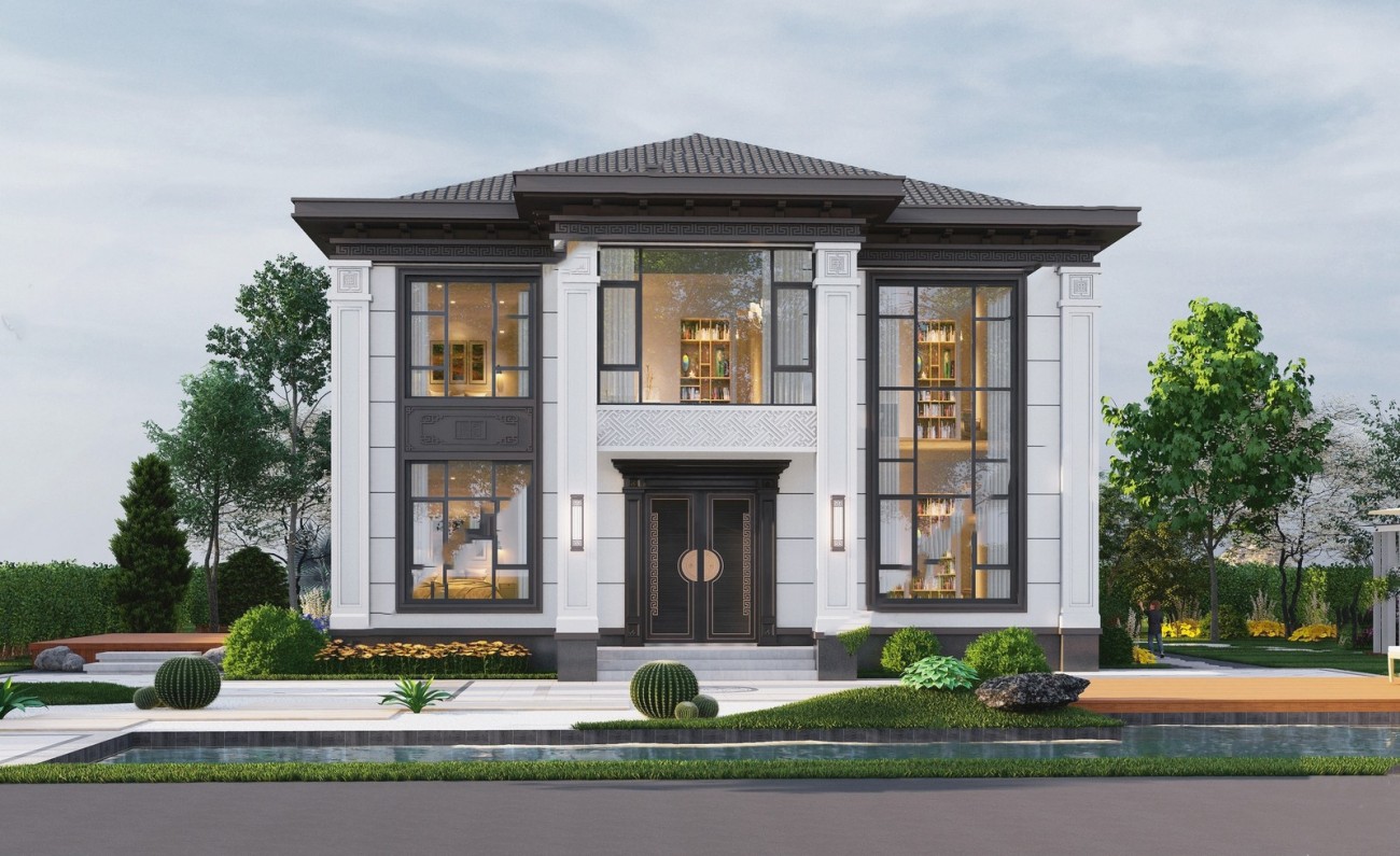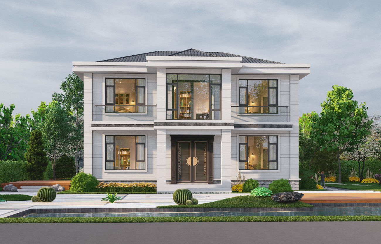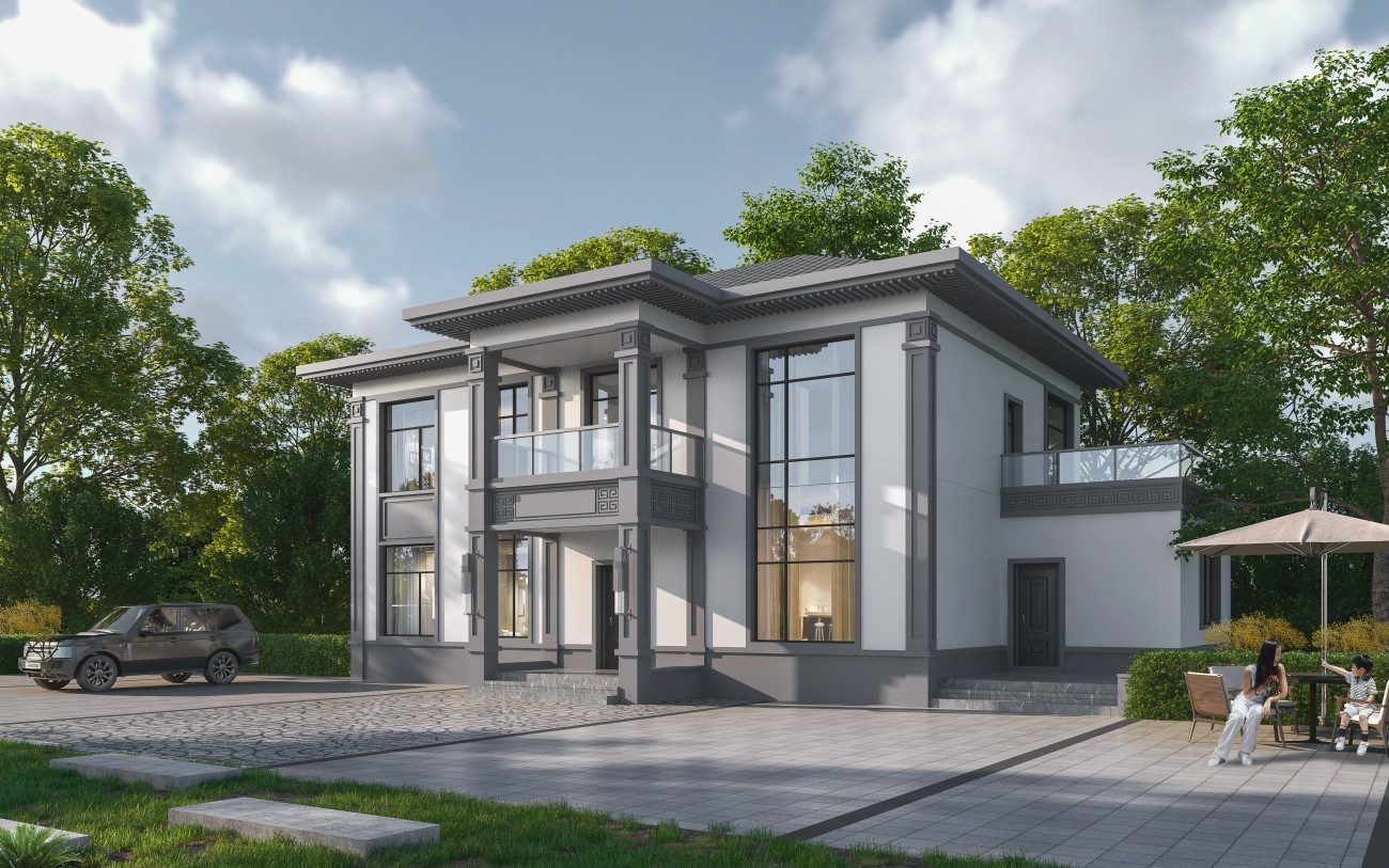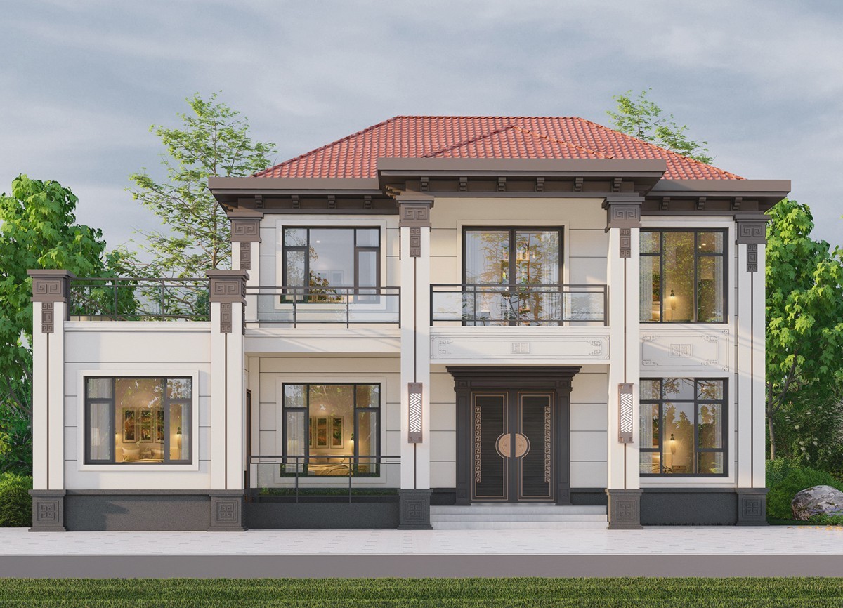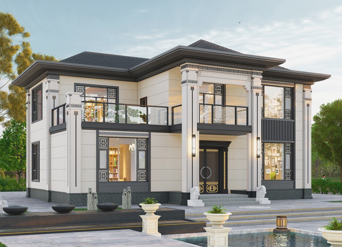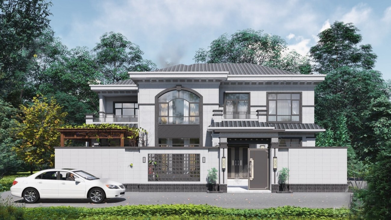 滨海005 两层新中式(11.36x11.76米)-【易设计】