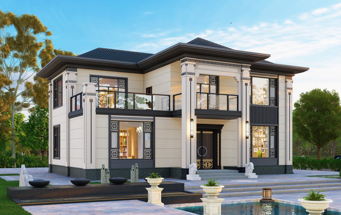 滨海043 二层 (11.3x9.1米) 乡村欧式简约-【易设计】